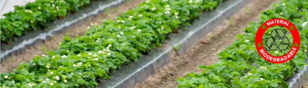 Mulch biodegradable ideal para hortalizas y frutales. Evita el crecimiento de malezas, reduciendo el uso de herbicidas. Fabricado con almidón de maíz 100% biodegradable, libre de OGM y tóxicos.